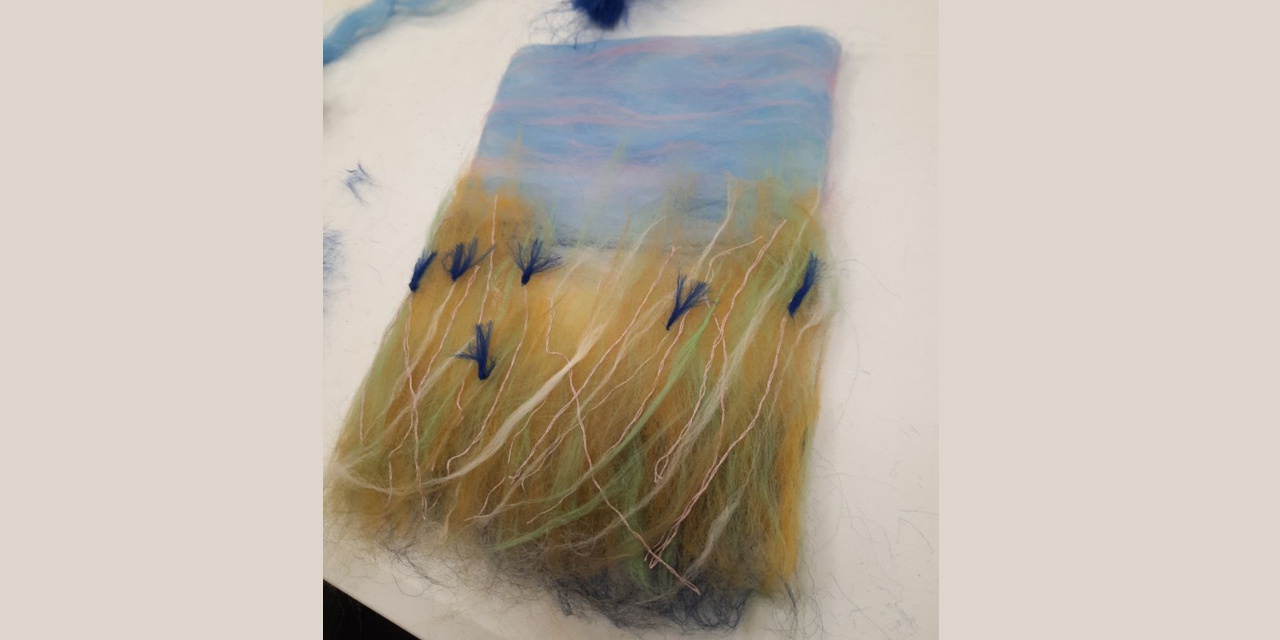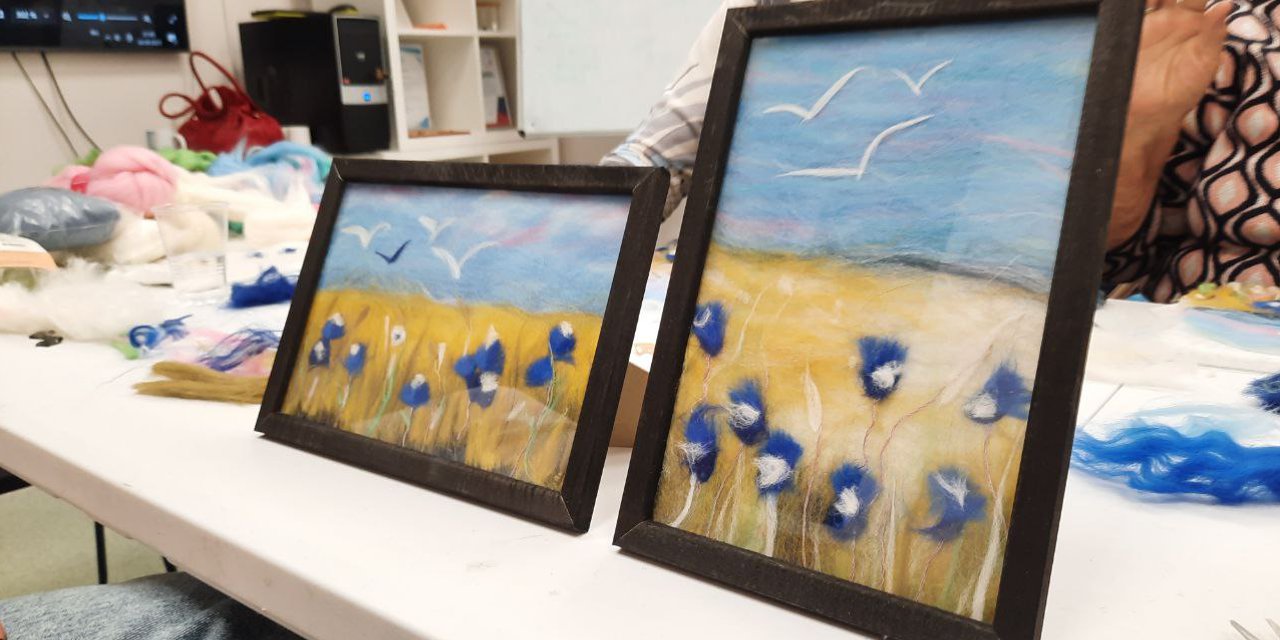 Занятие организовано командой некоммерческой организации «Расстояние», реализующей проект, в партнерском пространстве "Бизнес-Развитие. Образование". Участники освоили технику создания картин из шерсти, работая с различными цветами и текстурами.