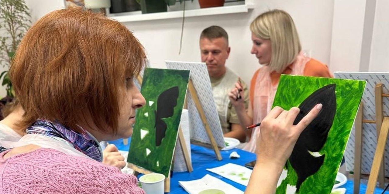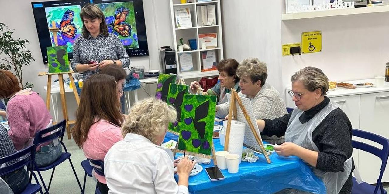 Под руководством специалиста по арт-терапии Елены Булгаковой, присутствующие осваивали возможности акриловых красок, позволяющих создавать как тонкие переходы цвета, так и объемные текстуры на холсте.