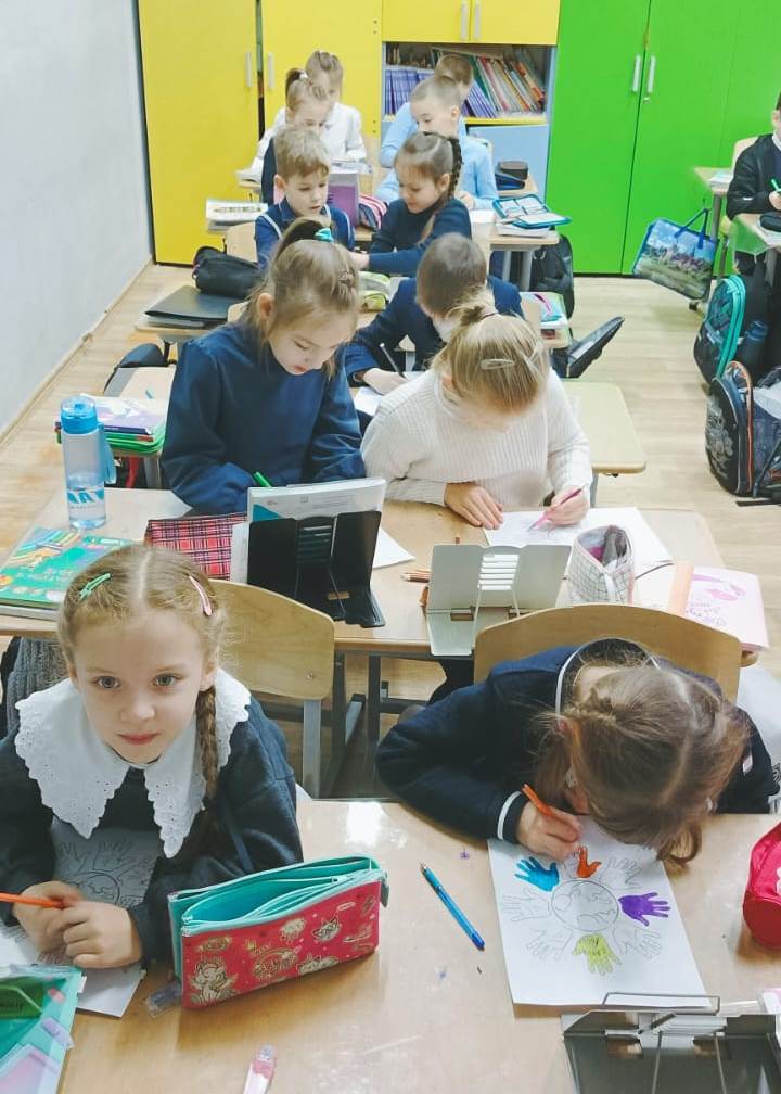 После увлекательной беседы каждый ученик получил задание: нарисовать свой «путь добрых дел». Дети с энтузиазмом взялись за творчество, а затем написали на стикерах одно доброе дело, которое пообещали выполнить в течение недели. От помощи родителям до заботы о природе — их идеи оказались искренними и трогательными.