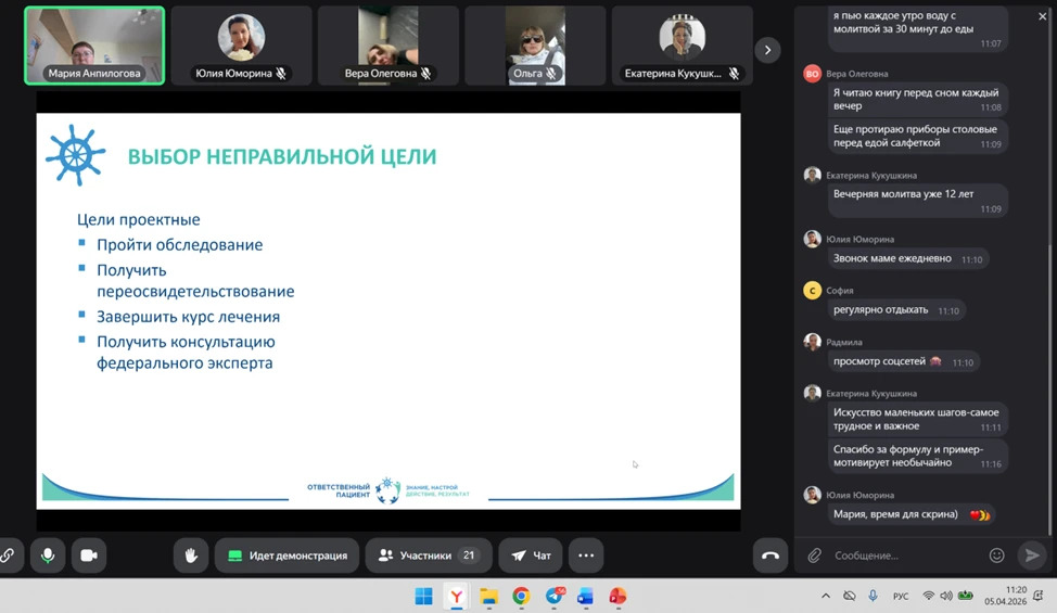 Тема вебинара возникла не случайно: в структуре ответственности пациента целый блок посвящен поведению, сохраняющему качество жизни человека с хроническим заболеванием. Инструменты внедрения привычек позволяют выполнять рекомендации врачей по лечению и образу жизни.